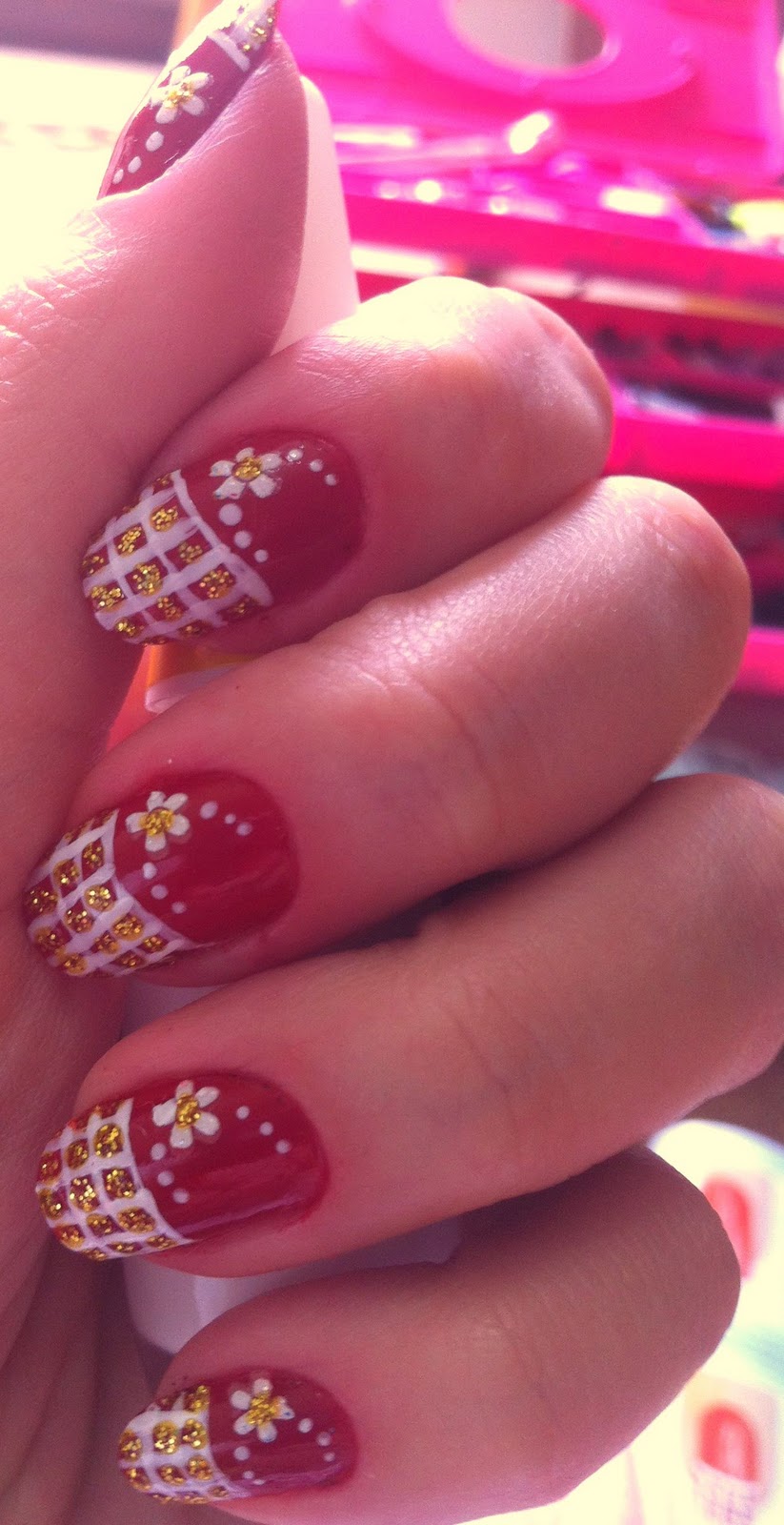 Segui um modelo que vi numa revista de unhas que a minha mãe me deu e eu adorei!