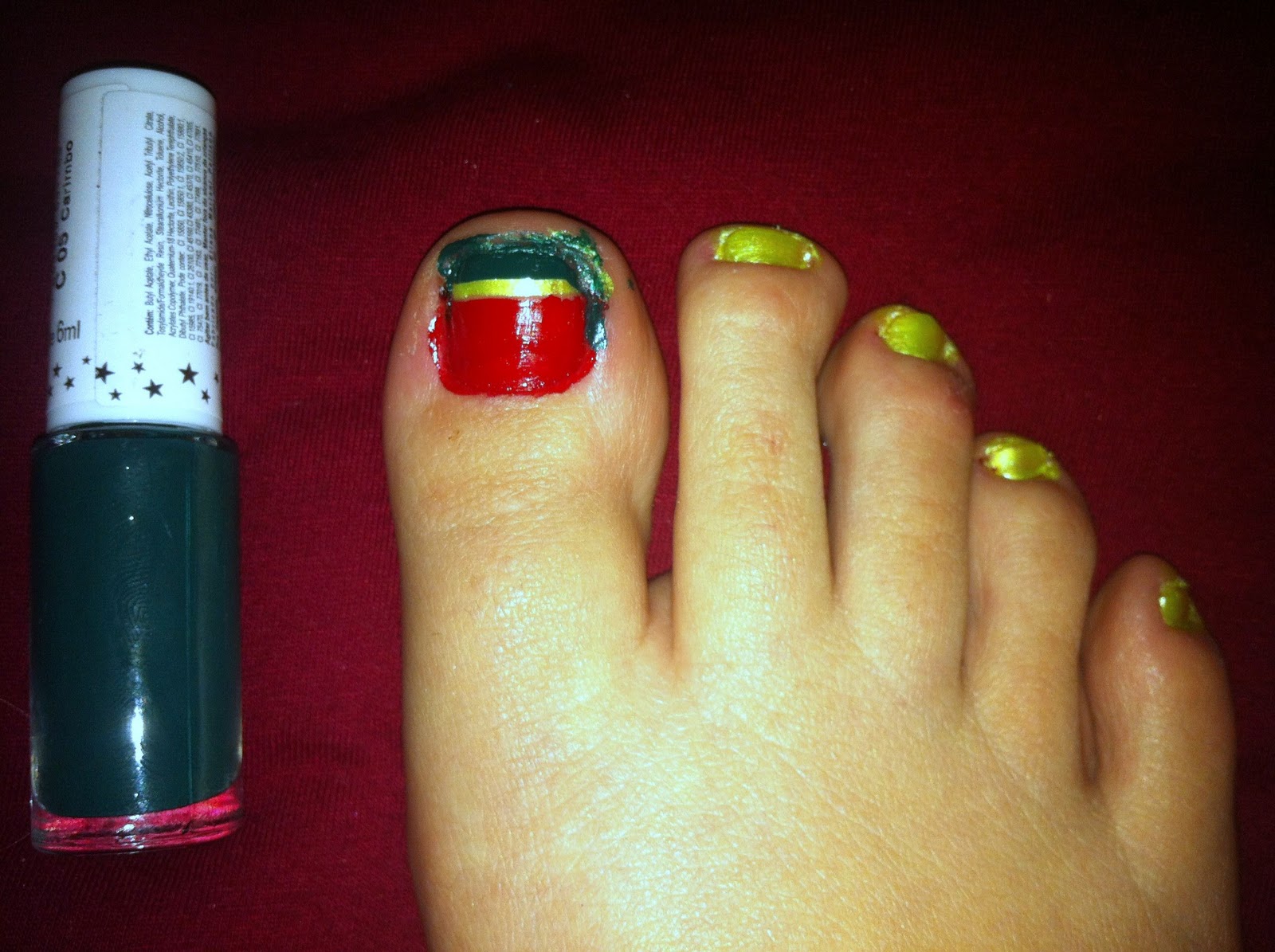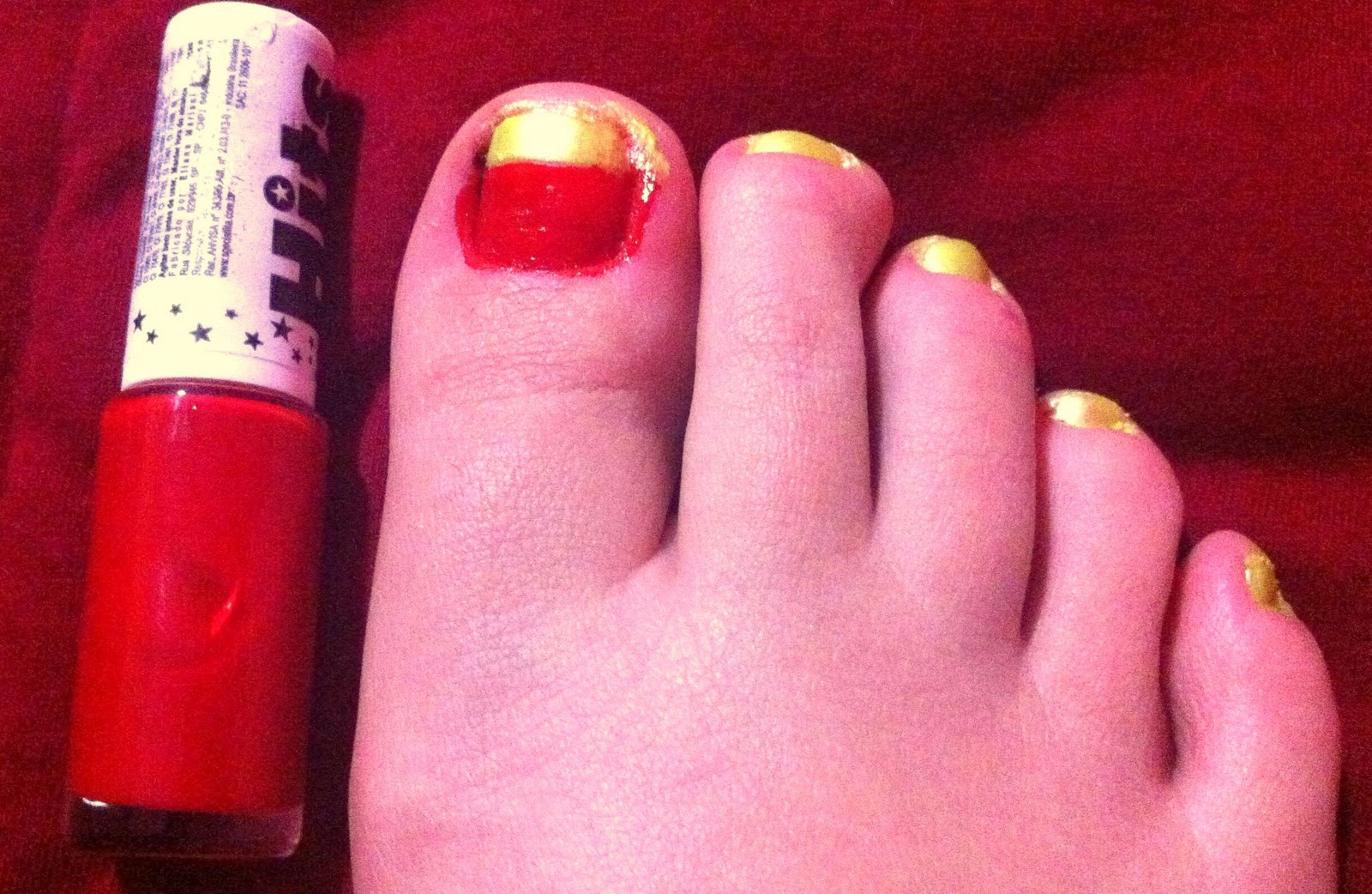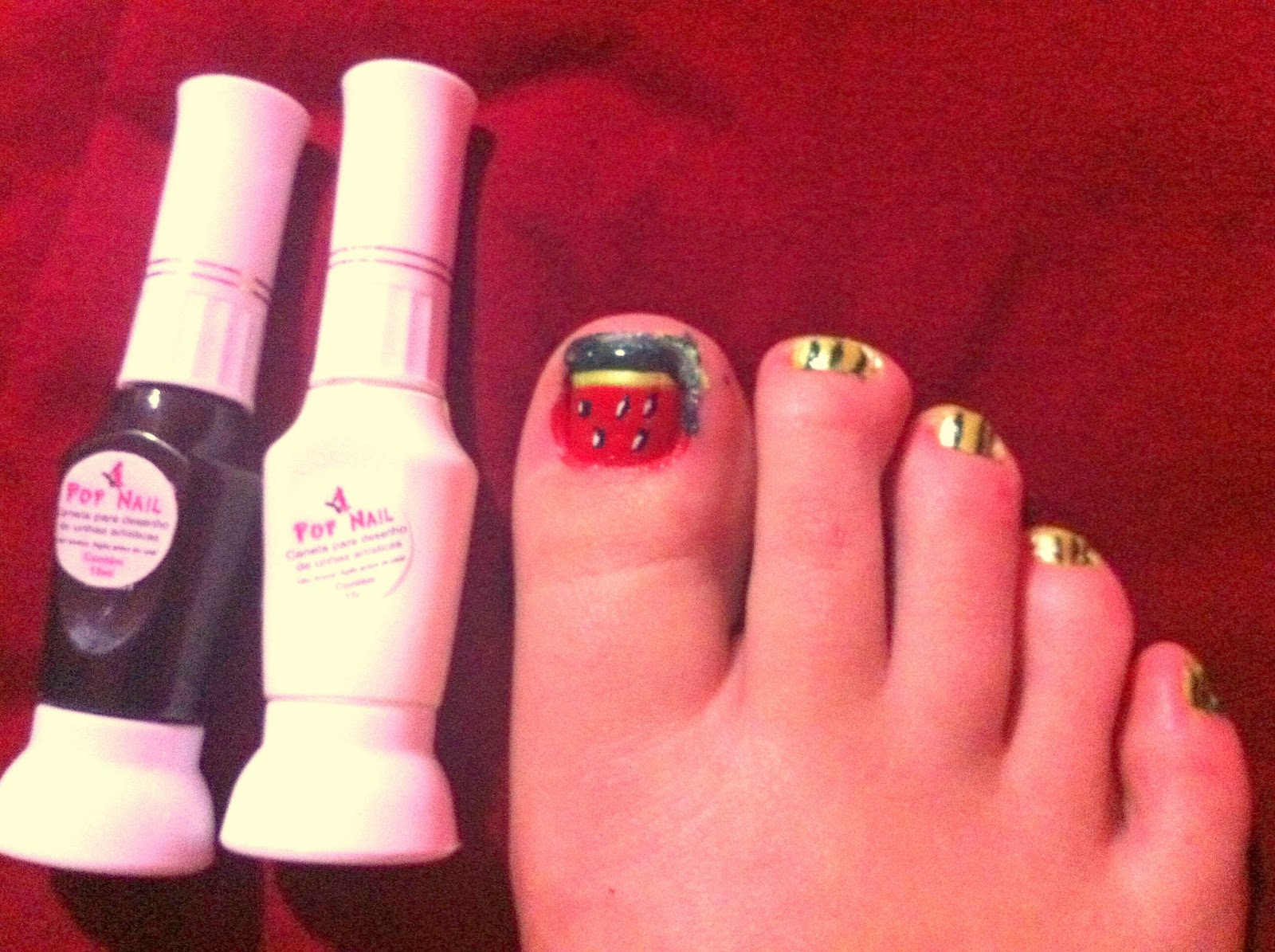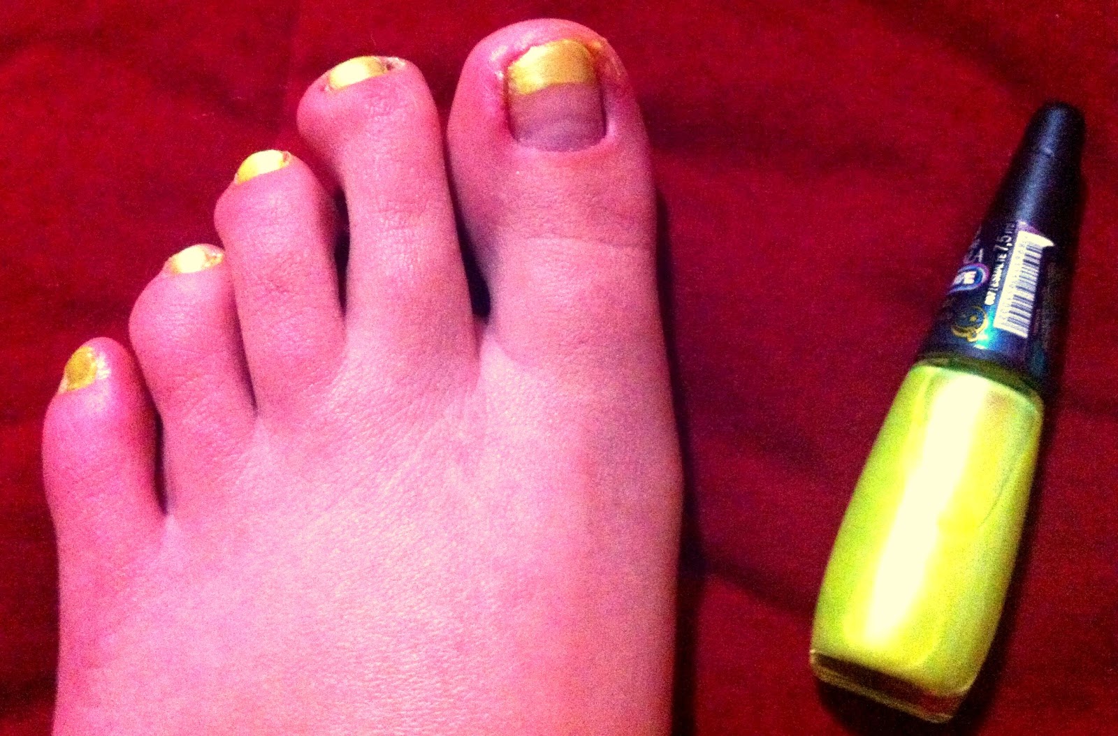 Não reparem no meu pé, nem nos borrados que sobraram e nem nos defeitinhos. Eu fiz com pressa e morrendo de sono!