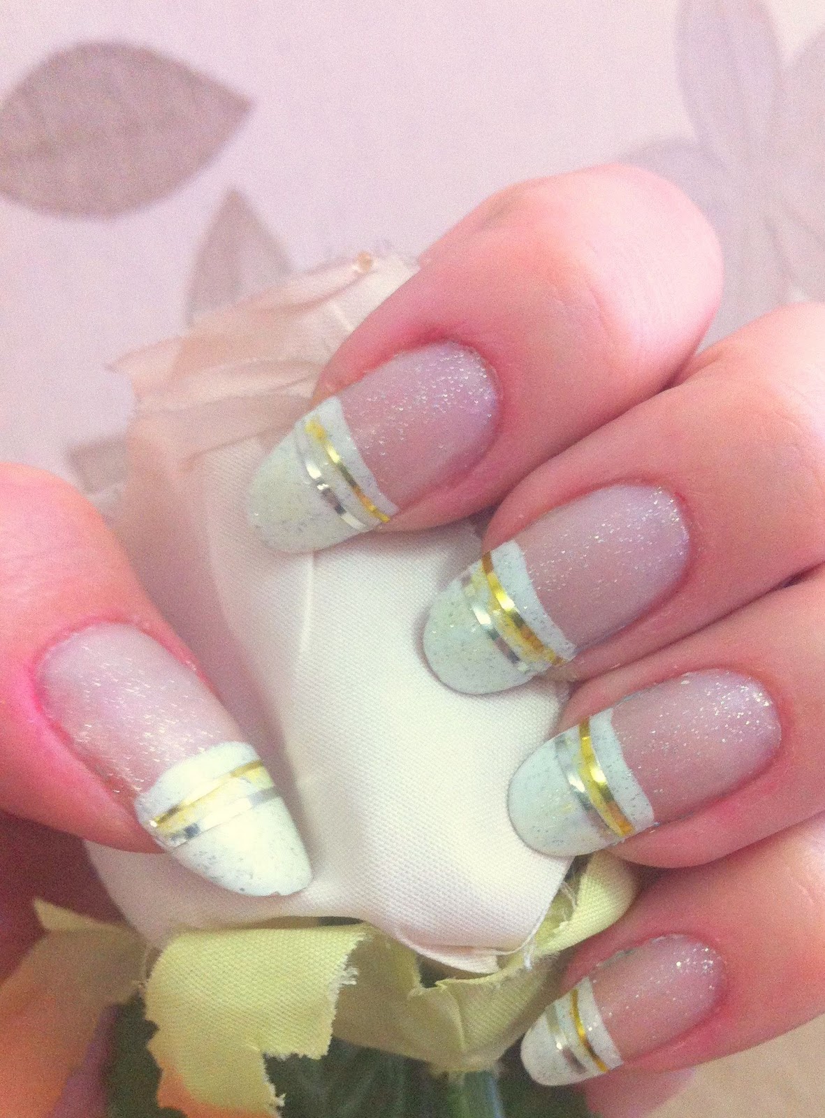 A ideia foi fazer uma francesinha e na franceinha colar uma fitinha prata e uma dourada!
