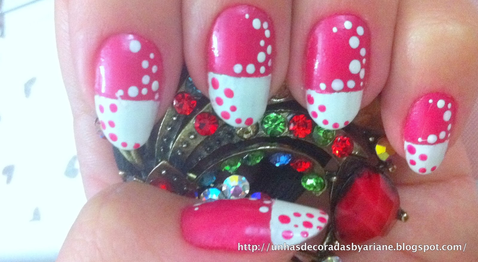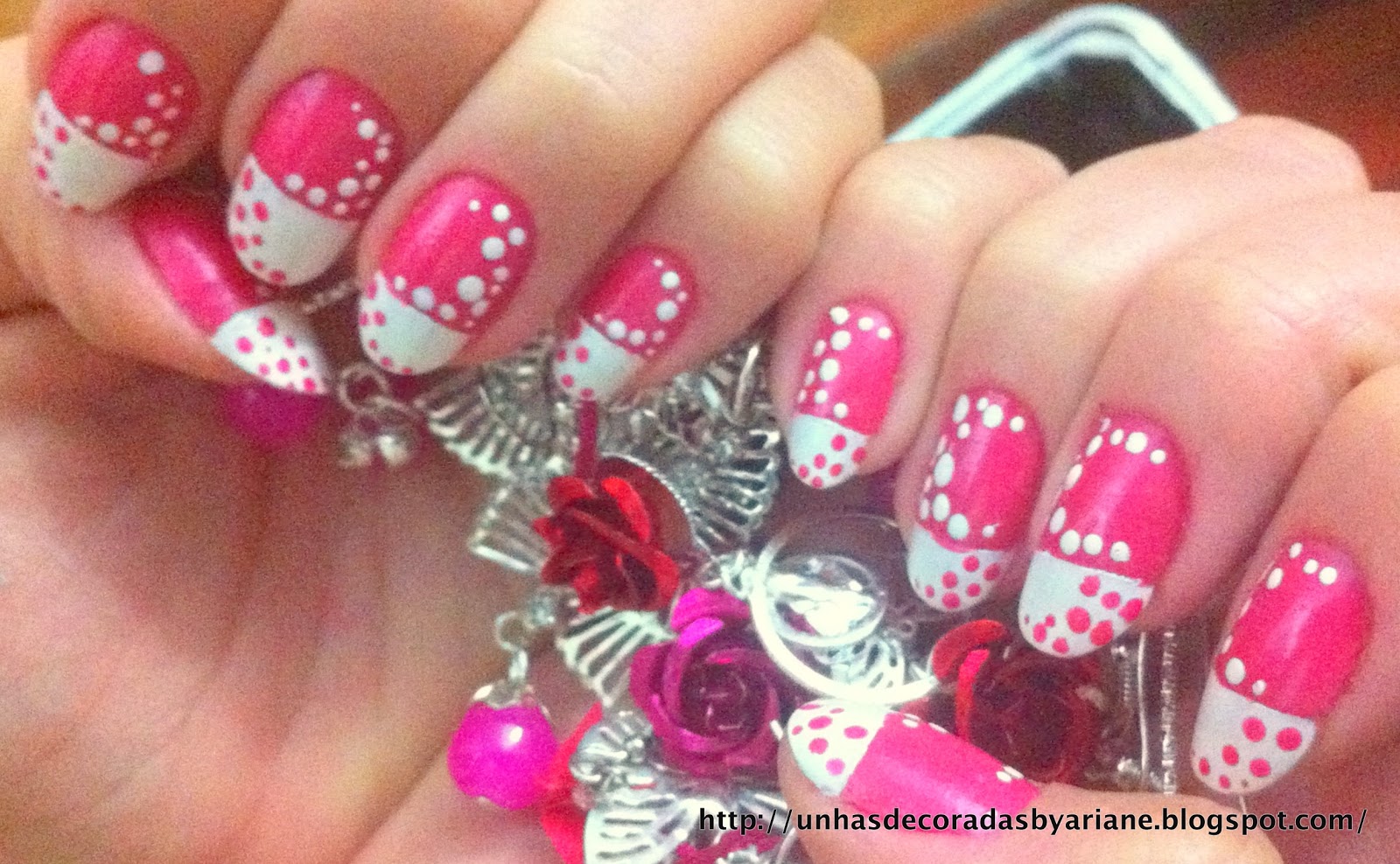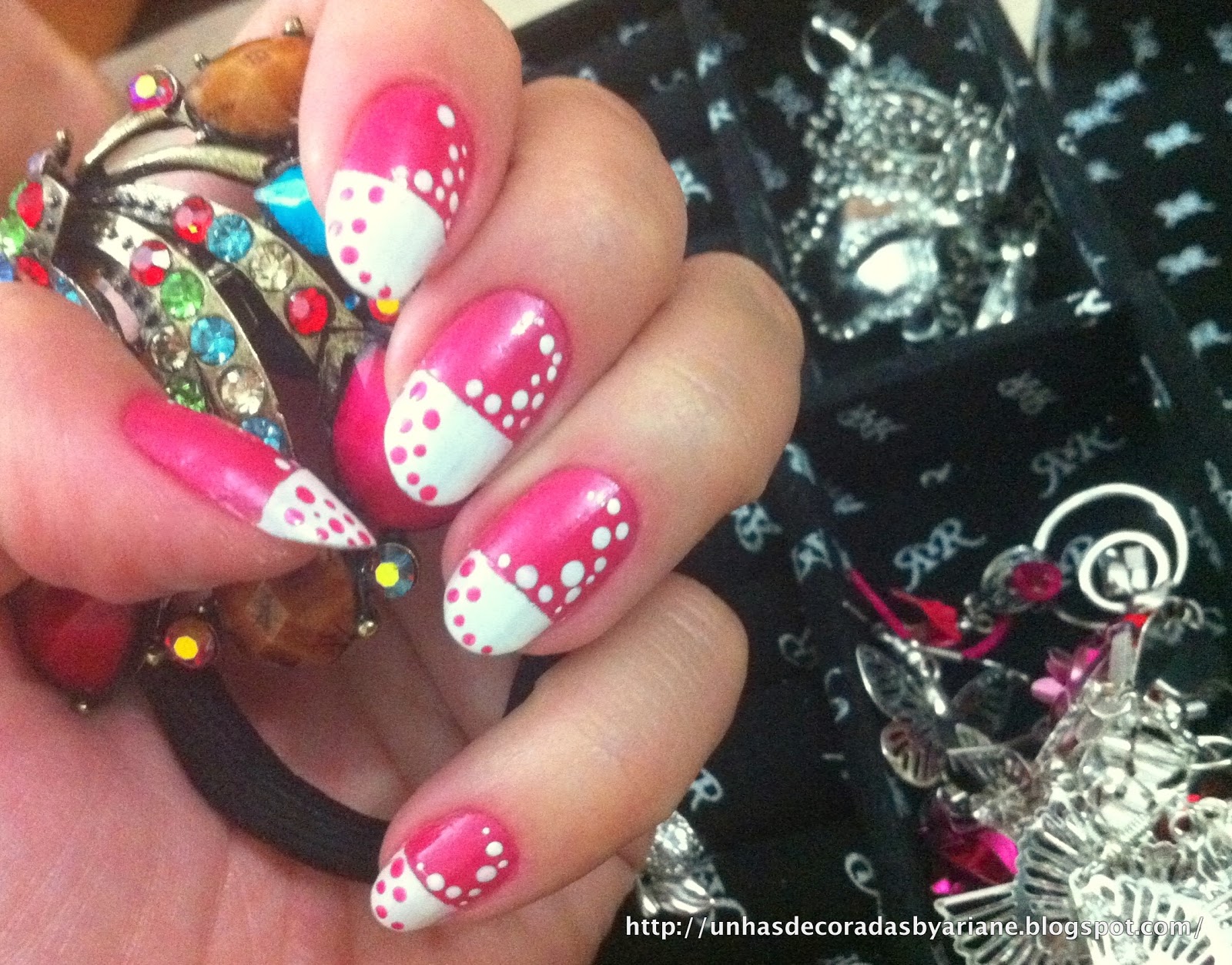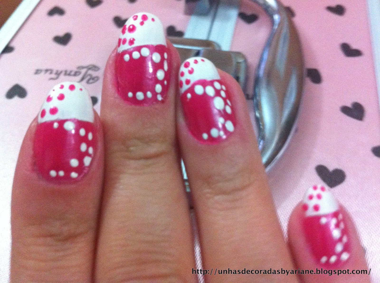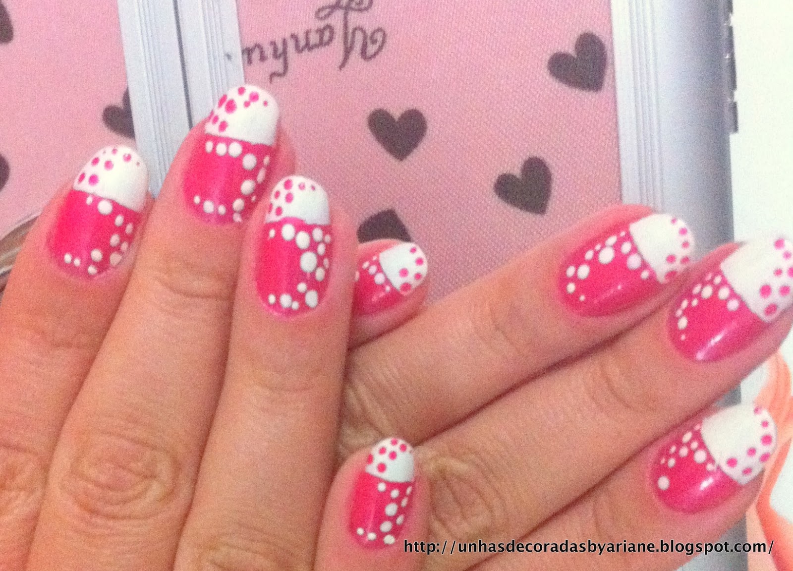 2 - Depois foi só fazer as bolinhas rosas no branco e brancas no rosa!