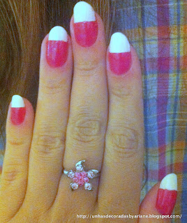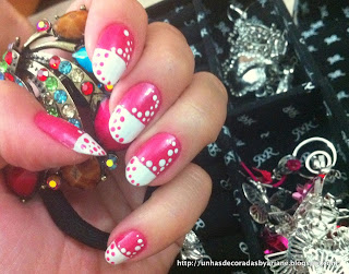 Foi difícil escolher um título para essa unha! Eu vi algum dia em algum lugar e achei a idéia super fofa! E o mais legal é que dá para combinar qualquer par de cores!!! =]