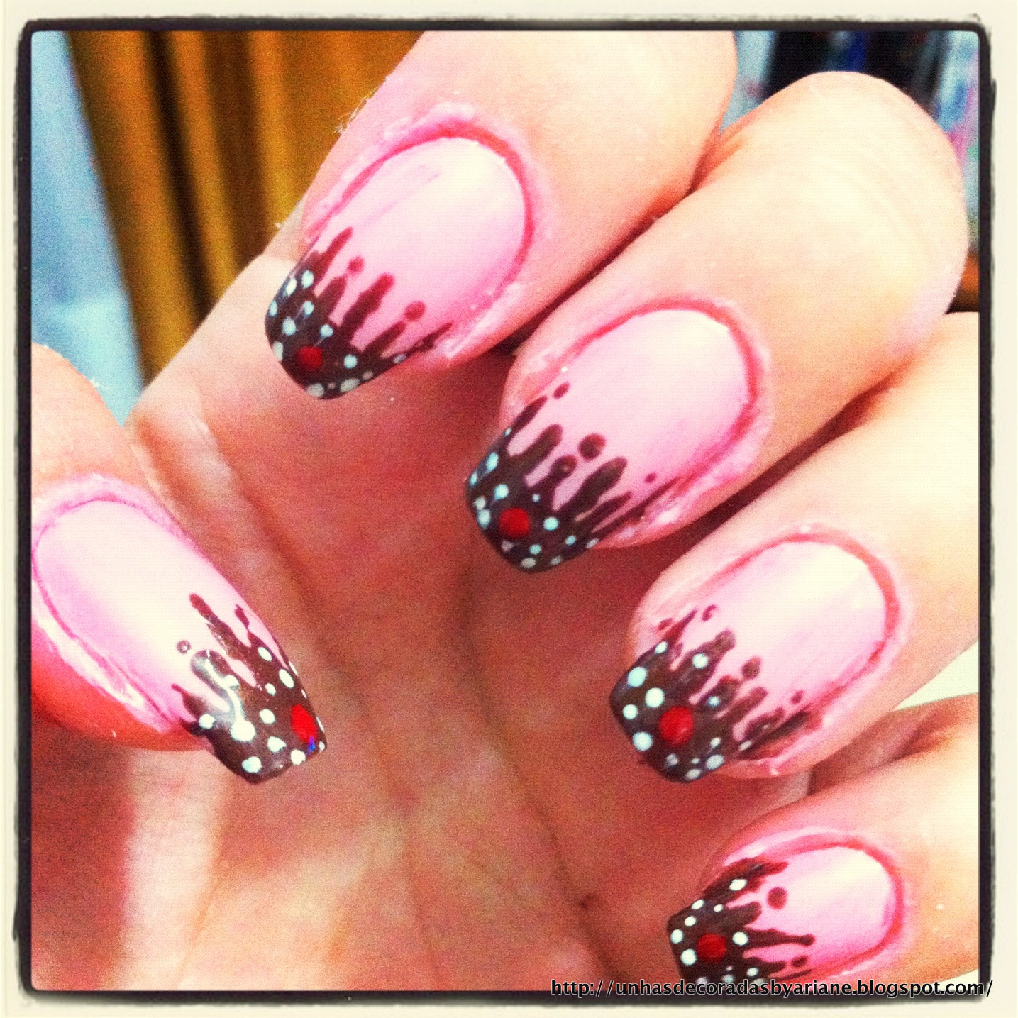 Já faz um tempo que eu queria aprender a fazer aquele efeito de chocolate derretido (ou de sangue, afinal é o mesmo princípio) nas unhas, sabem?