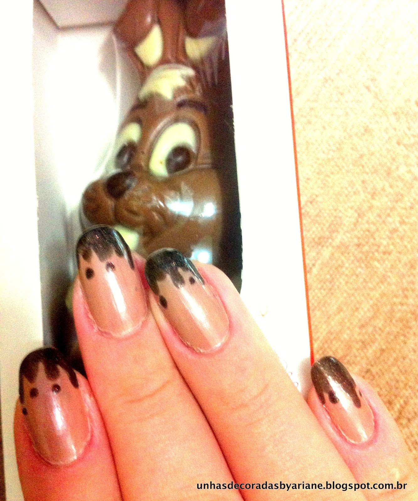 A unha desse post é uma unha para a Páscoa que está chegandoo! É bem simples, eu usei a técnica do chocolate derretido - igual na unha de sorvete - e desenhei um coelhinho em um dedão e ovinhos de páscoa no outro!  =]