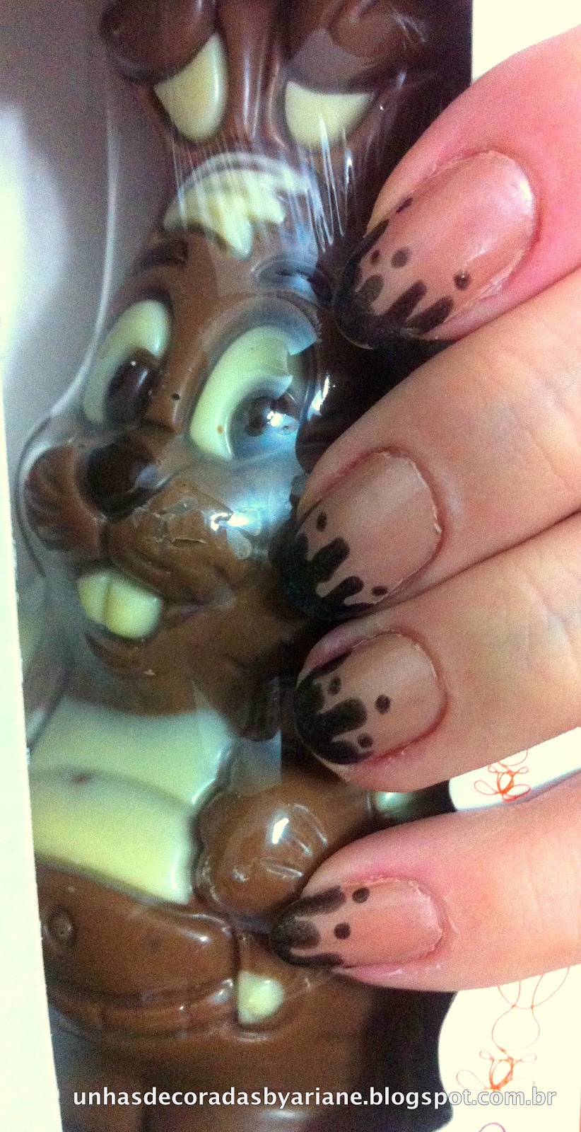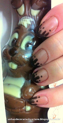 A unha desse post é uma unha para a Páscoa que está chegandoo! É bem simples, eu usei a técnica do chocolate derretido - igual na unha de sorvete - e desenhei um coelhinho em um dedão e ovinhos de páscoa no outro! =]