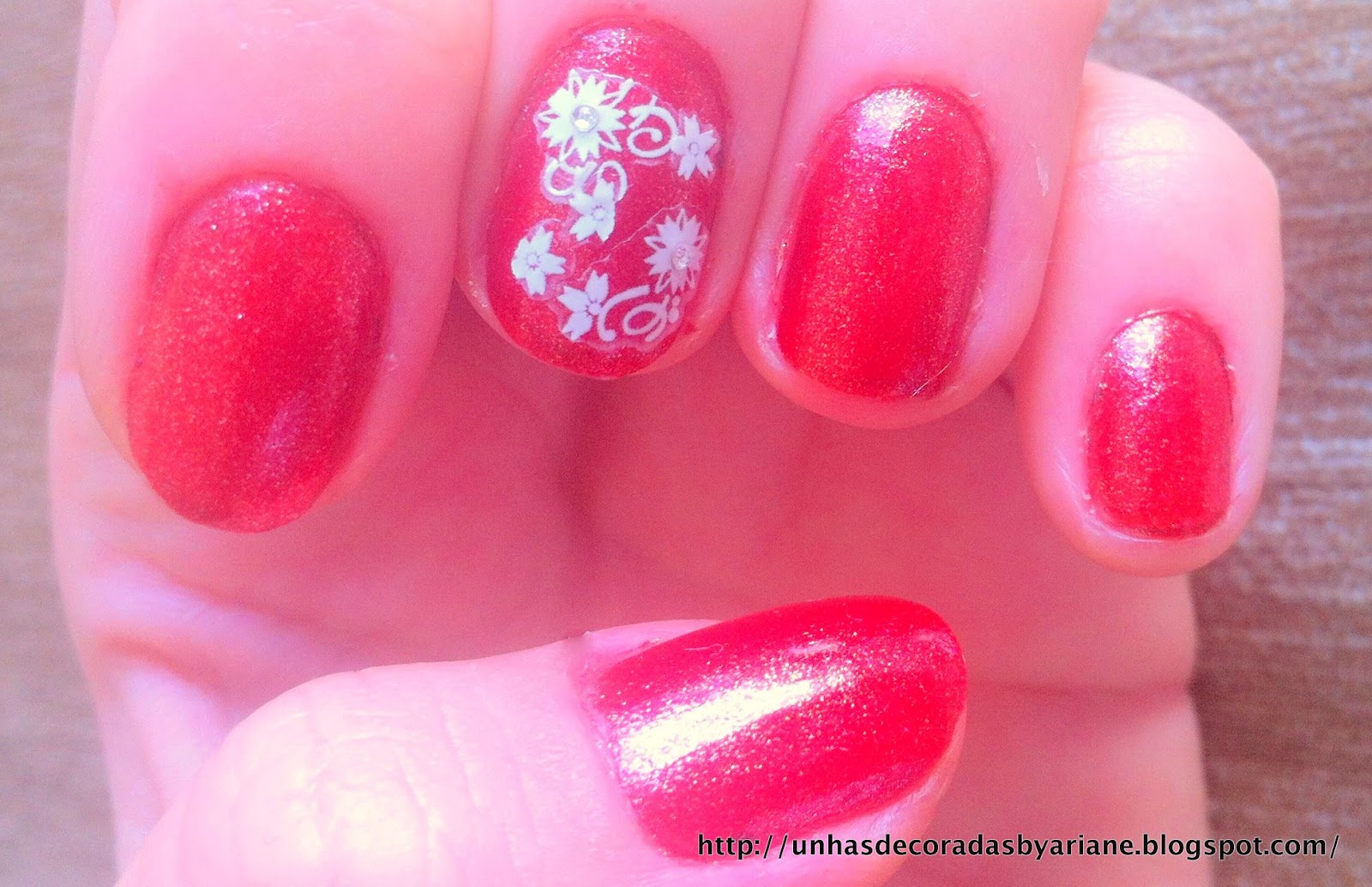 Ainda não usei porque fiz minhas unhas ontem a noite! Na pressa, por isso só pintei de vermelho e fiz umas flores nos dedos do meio: